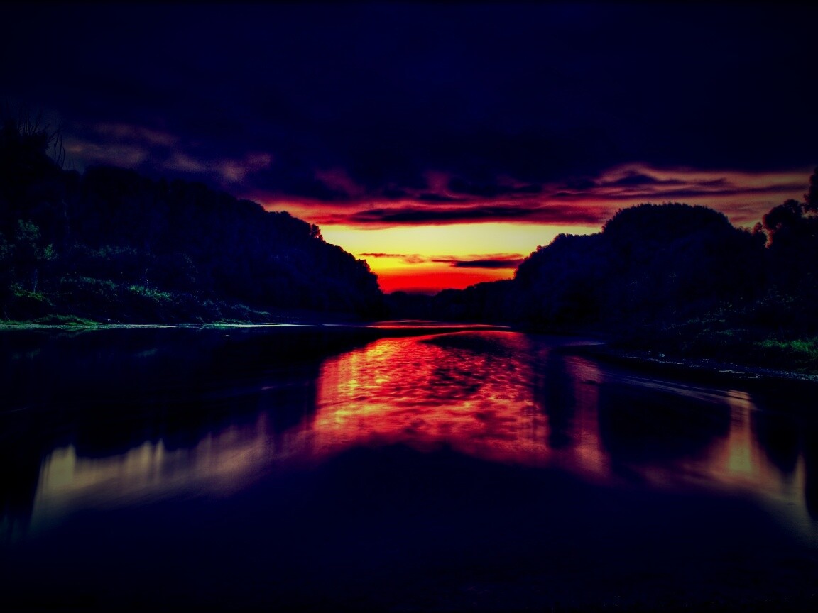 «Багровый закат и водная гладь»