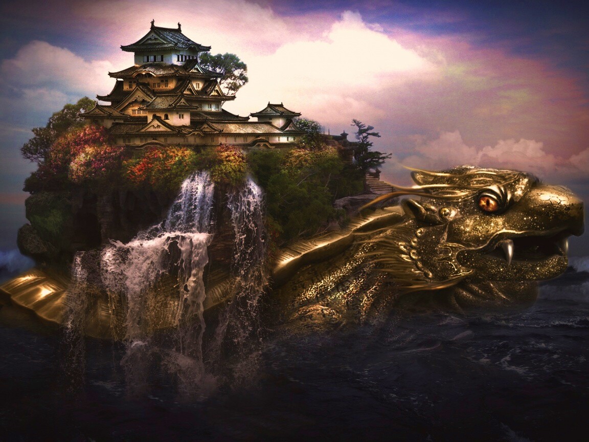 «Золотая черепаха и китайская пагода в океане»