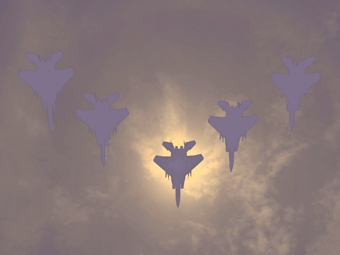 «Ряд истрибителей на фоне солнца»