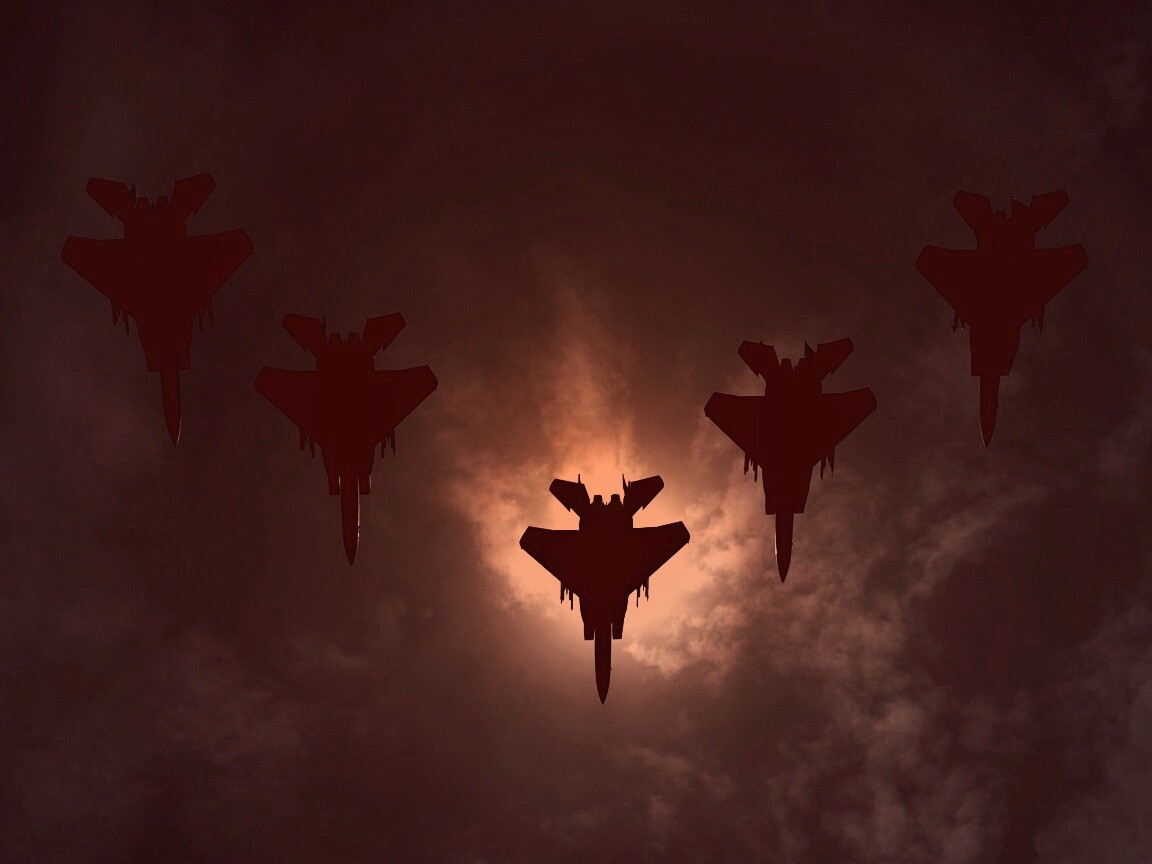 Обои для рабочего стола «Ряд истрибителей на фоне солнца» 1152х864 с фильтром toaster (оригинал 3172х2262)