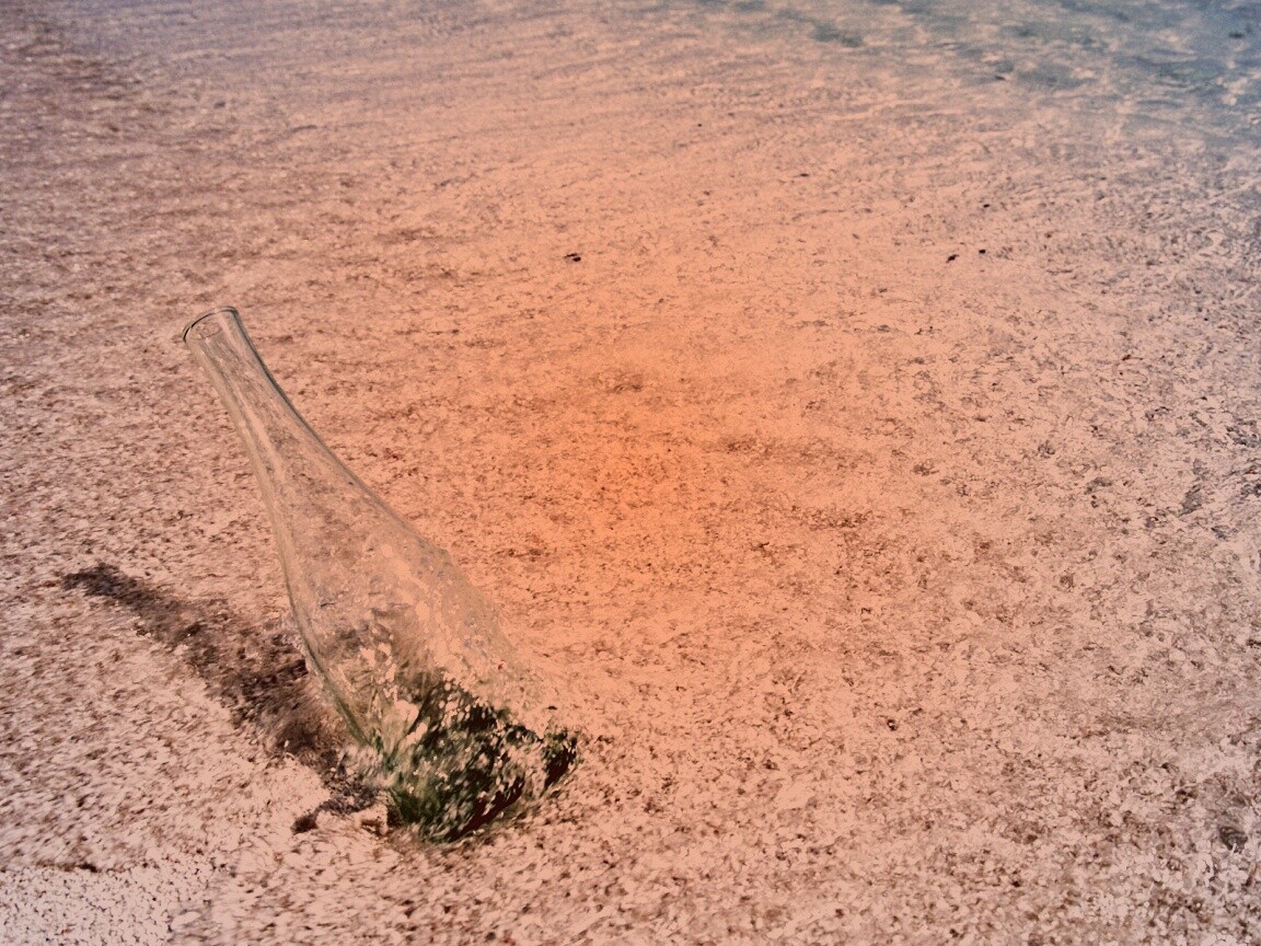 «Бутылка в песке у воды»