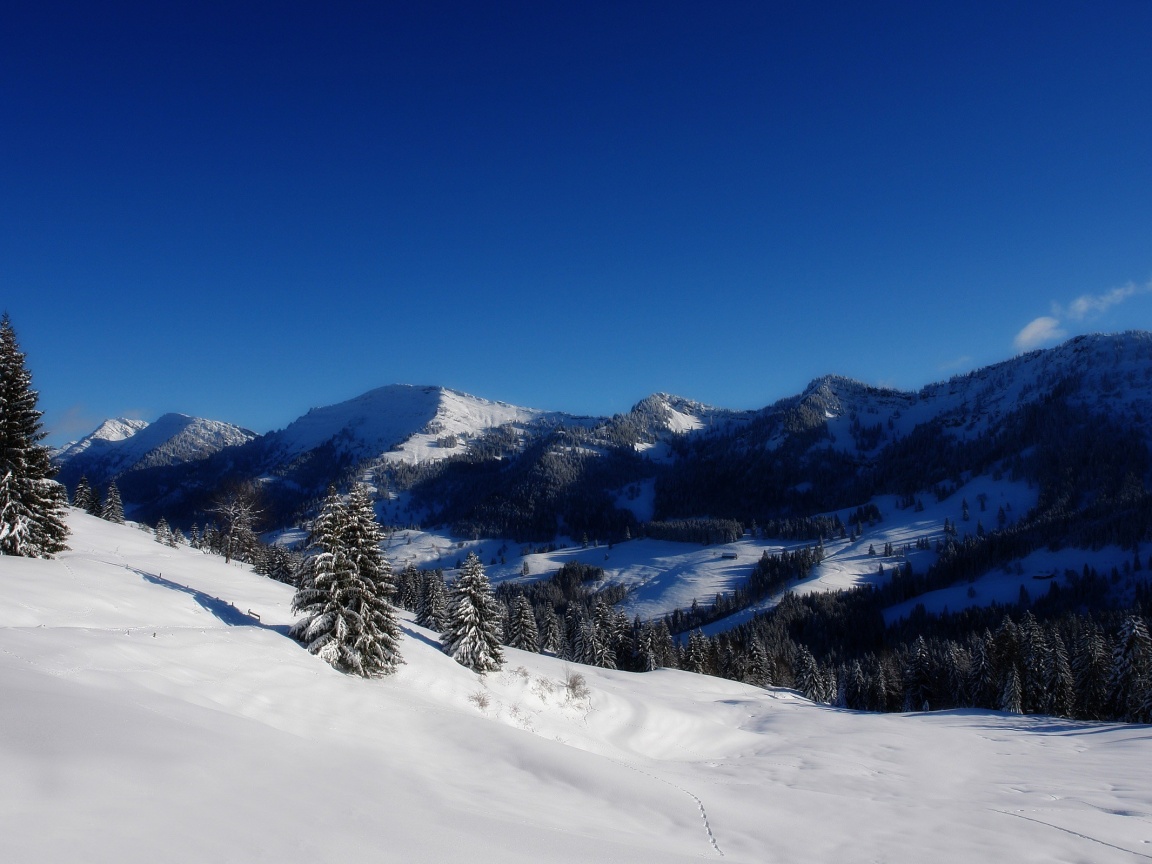 Обои для рабочего стола «Лес в горах» 1152х864 (оригинал 2560х1600)