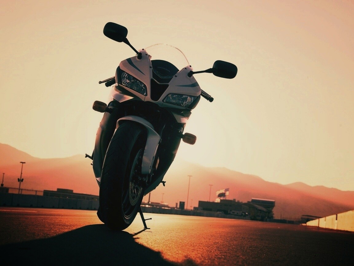 «Мотоцикл на фоне заходящего солнца»