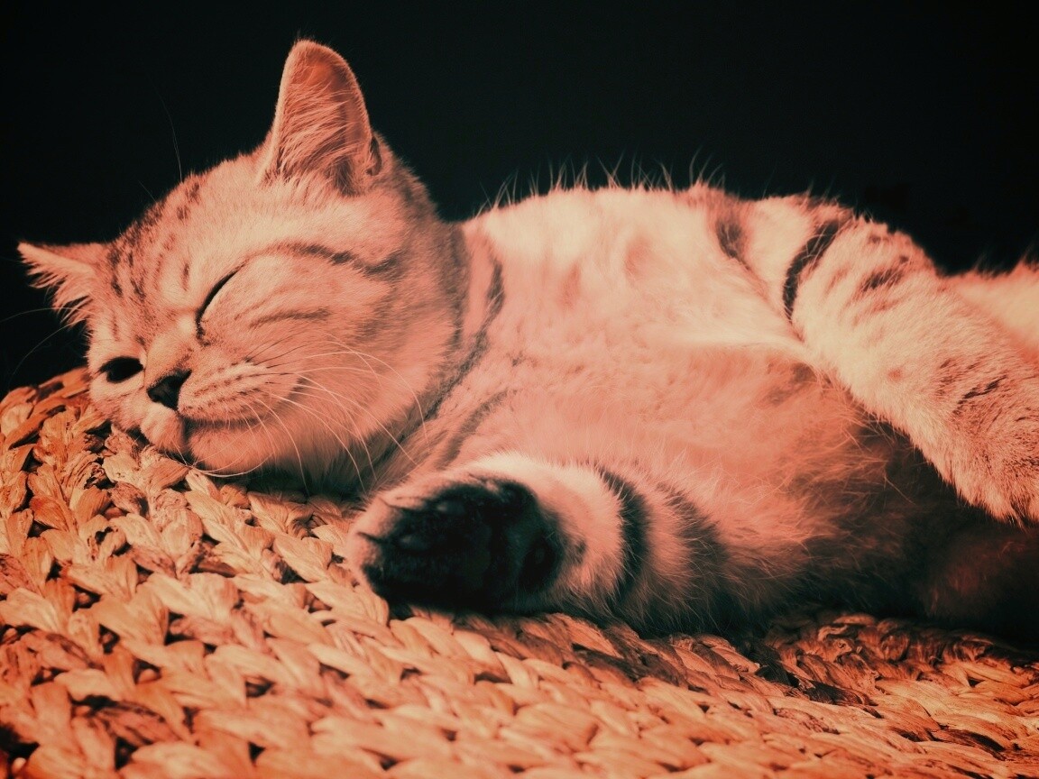 «Пушистый кот спит на корзине»