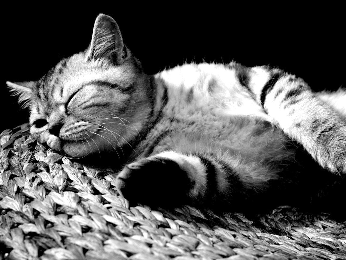 «Пушистый кот спит на корзине»