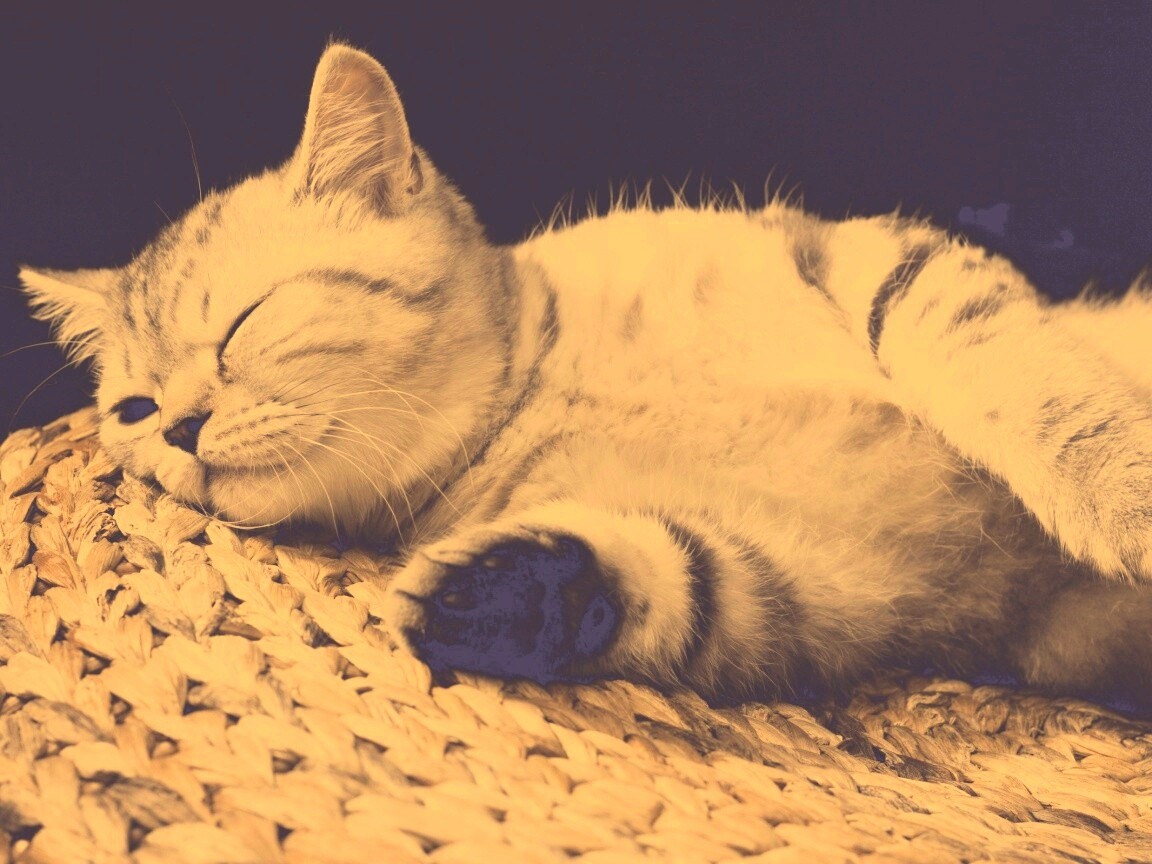 «Пушистый кот спит на корзине»
