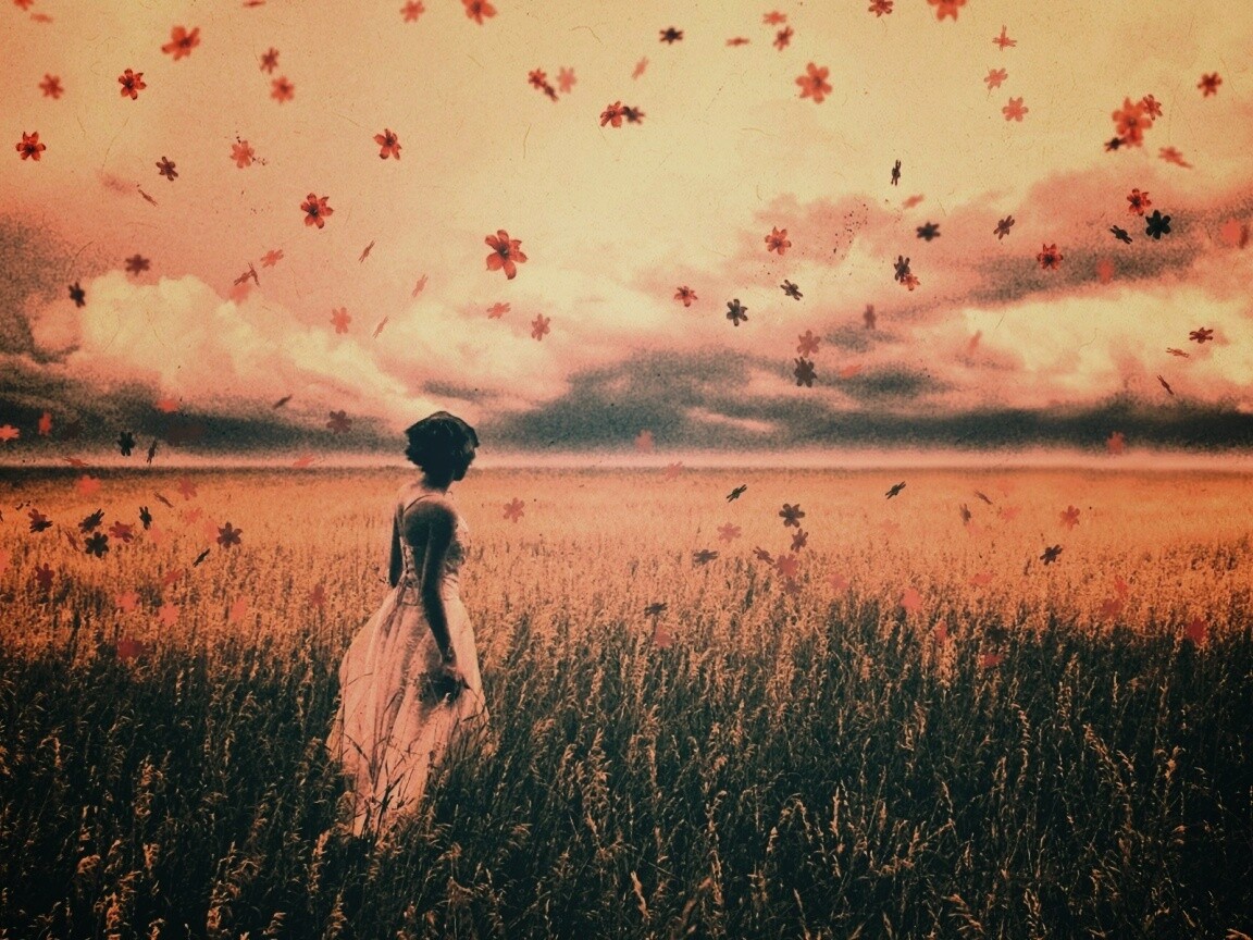 «Грустная девушка в поле травы»