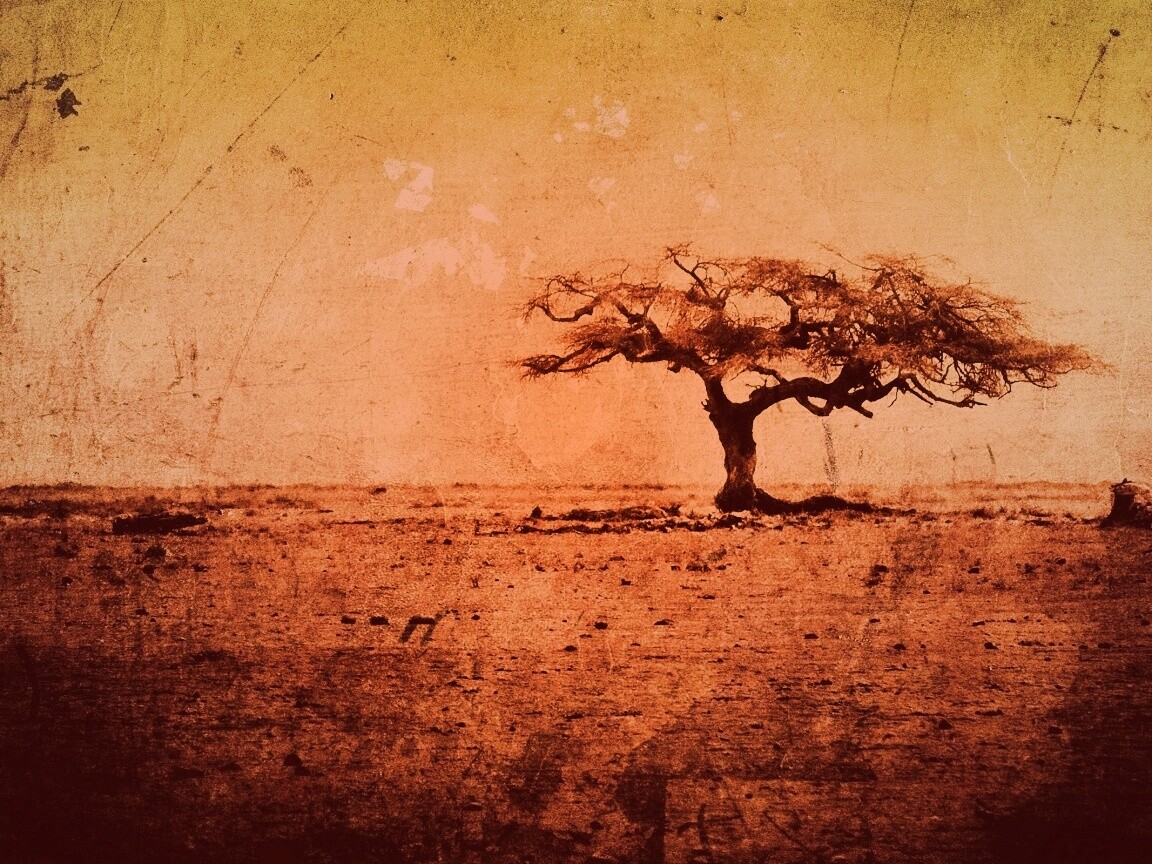 Обои для рабочего стола «Гранжевое дерево в саванне» 1152х864 с фильтром toaster (оригинал 2560х1600)