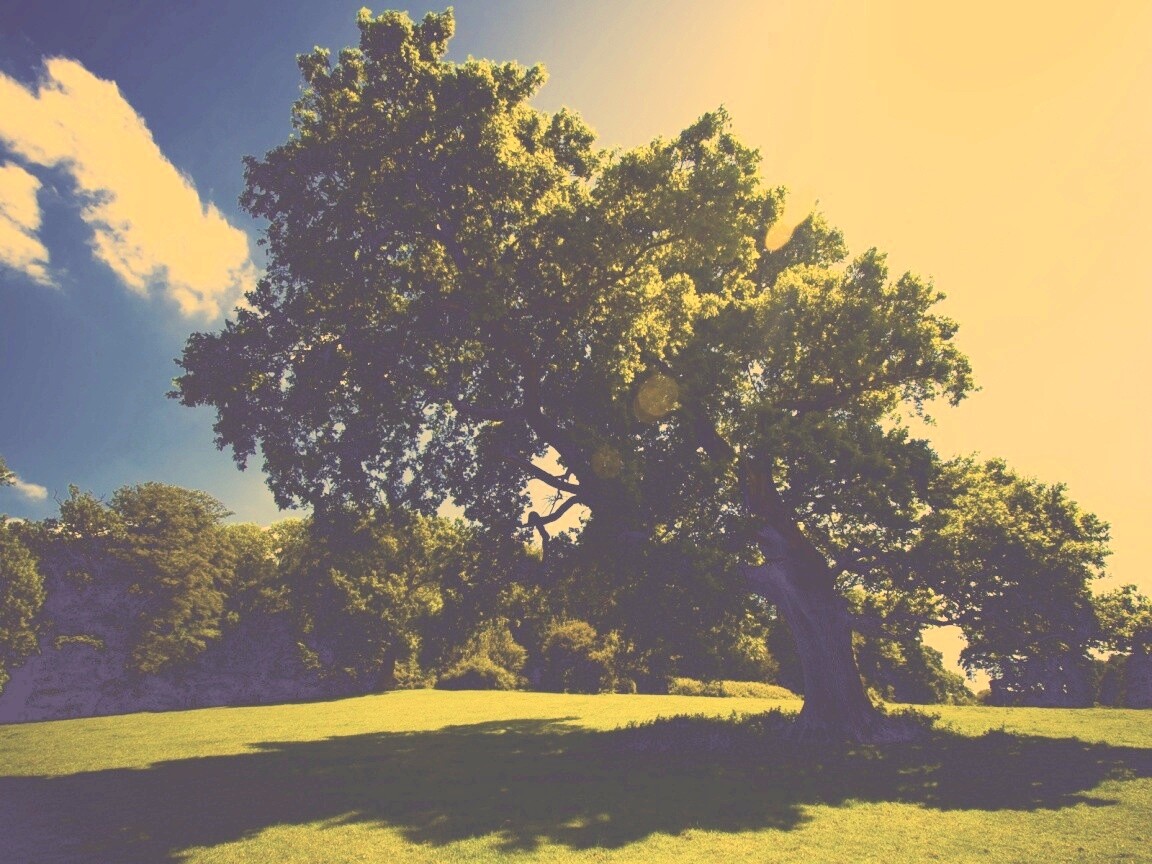 «Большое зеленое дерево на лужайке»