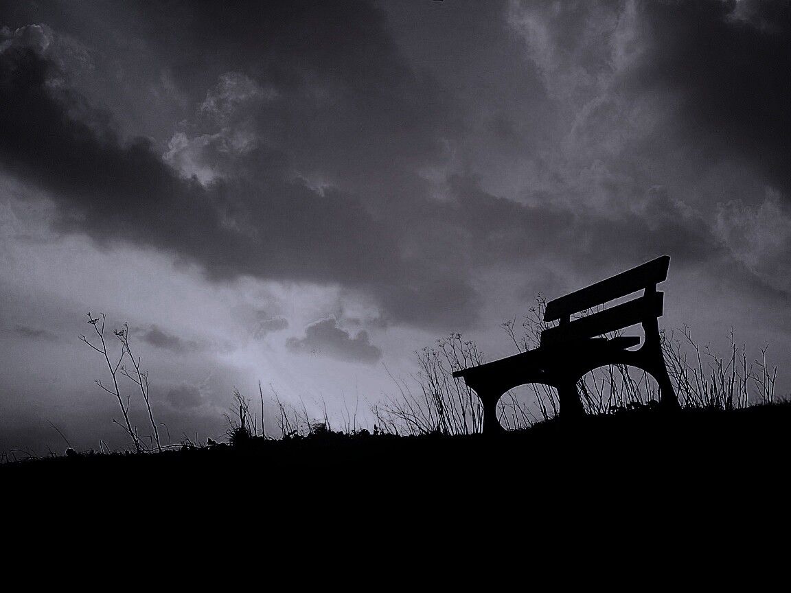 «Силуэт скамейки на фоне неба»