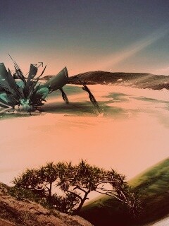 Обои для рабочего стола «Робот на побережье» 240х320 с фильтром toaster (оригинал 2560х1600)
