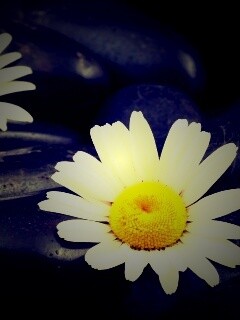 Обои для рабочего стола «Ромашка среди гальки» 240х320 с фильтром lomo (оригинал 3872х2592)