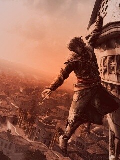 Обои для рабочего стола «Ассасин лезет на башню» 240х320 с фильтром toaster (оригинал 2048х2048)