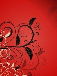 «Черно-белые листики на красном фоне»