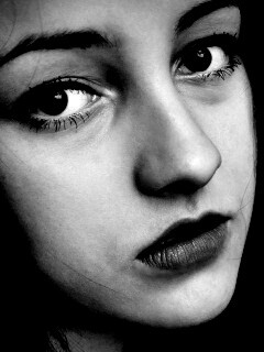 «Брюнетка с ярким макияжем и печальным лицом»