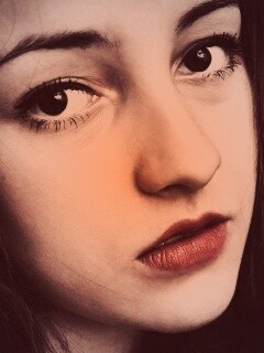 «Брюнетка с ярким макияжем и печальным лицом»