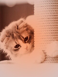 «Пушистая кошка с когтеточкой»