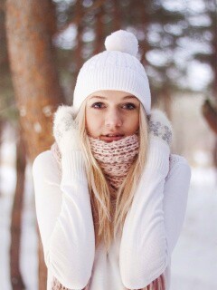 «Девушка в белом в снежном лесу»