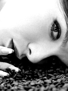 «Соблазнительная девушка с кофейными зернами»
