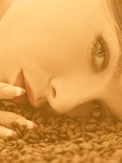«Соблазнительная девушка с кофейными зернами»