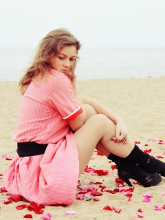 «Девушка среди лепестков на пляже»