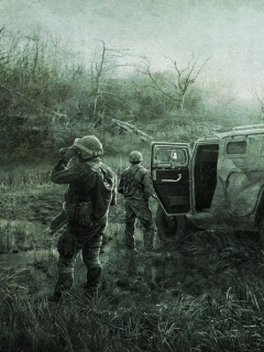 «Солдаты из сталкера на болоте»