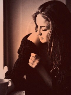 «Обнаженное плечо и чашка кофе»