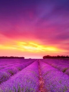 «Поле фиолетовых цветов на закате»