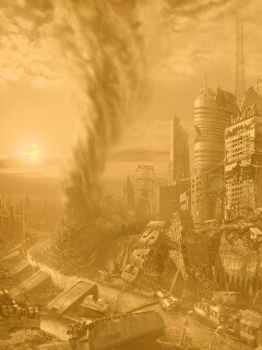 Обои для рабочего стола «Торнадо в разрушенном городе» 240х320 с фильтром kelvin (оригинал 1920х1200)