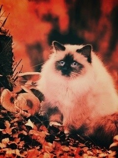 «Пушистый кот среди пожелтевшей листвы»