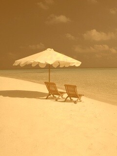 «Песчаный пляж с двумя жезлонгами»