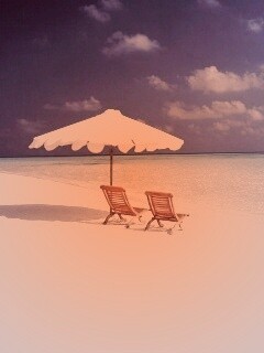 «Песчаный пляж с двумя жезлонгами»