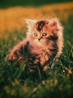 «Пушистый котенок в траве»