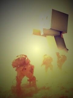 Обои для рабочего стола «Картонный человек среди солдат» 240х320 с фильтром lomo (оригинал 1920х1200)