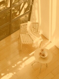 «Стул, столик и цветы в комнате»