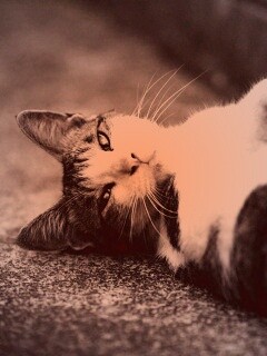 Обои для рабочего стола «Кот лежит на спине» 240х320 с фильтром toaster (оригинал 1600х1200)