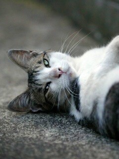Обои для рабочего стола «Кот лежит на спине» 240х320 с фильтром vibrance (оригинал 1600х1200)