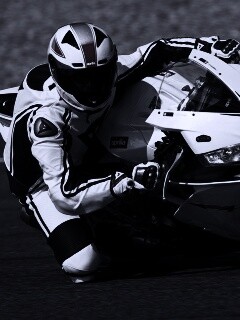 Обои для рабочего стола «Байкер в белой экиперовкена Априлия РСВ4» 240х320 с фильтром gotham (оригинал 3200х2000)