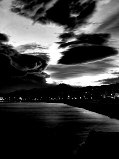 «Красивый закат над городом у моря»