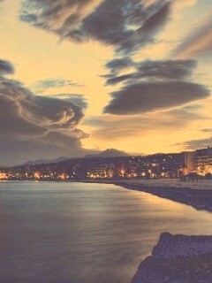 «Красивый закат над городом у моря»