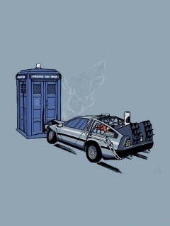 Обои для рабочего стола «Что будет если ДеЛореан врежется в Тардис?» 240х320 с фильтром vibrance (оригинал 1920х1200)