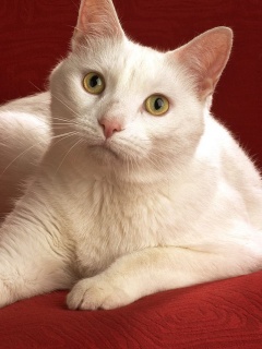 Обои для рабочего стола «Белой кот на красном диване» 240х320 (оригинал 1680х1050)