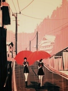 «Девушки с красными зонтами»