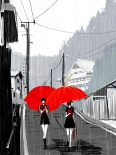 «Девушки с красными зонтами»