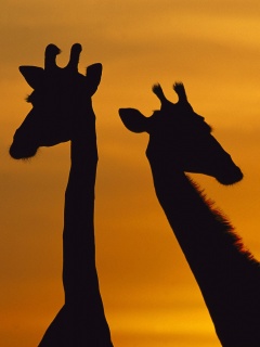 «Три силуэта жирафов на фоне неба»