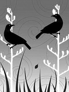«Векторные стилизованные птицы на ветках дерева»