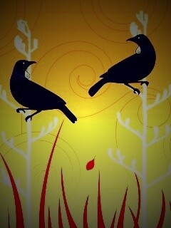 «Векторные стилизованные птицы на ветках дерева»