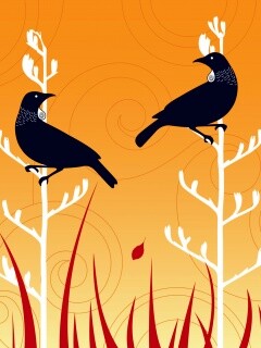 «Векторные стилизованные птицы на ветках дерева»