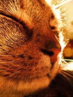 Обои для рабочего стола «Спящий на солнце рыжий кот» 240х320 с фильтром vibrance (оригинал 1680х1050)