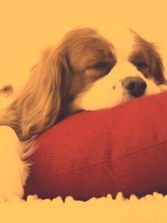«Спящий щенок на красной подушке»